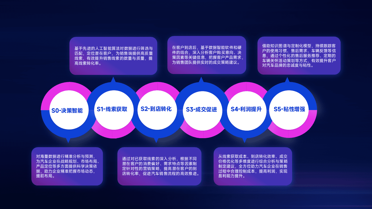 通过拓宽潜在客户来源、、优化线索分配并提高到店转化率,,以增强销售效率。。。。同时,,,利用线索数据不断优化分析模型,,,,有效提升转化率,,,扩大营销影响力。。。。